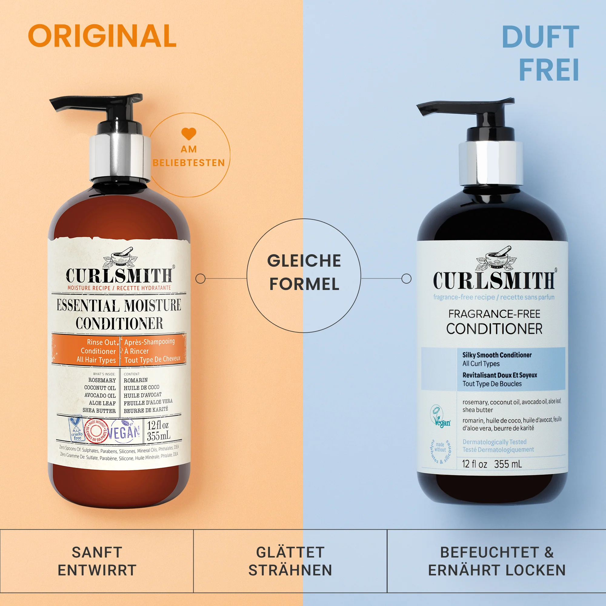 A silky smooth conditioner, dermatologically tested, that gently detangles and smooths strands without weighing the hair down.