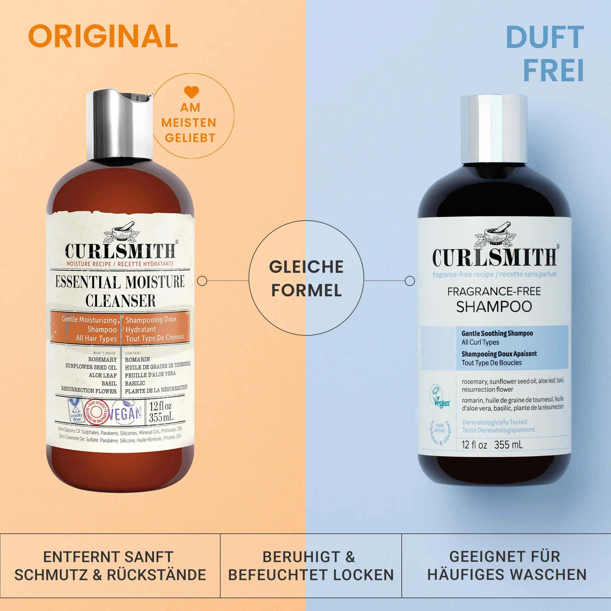 A soothing shampoo, dermatologically tested, that gently cleanses without leaving hair dry.